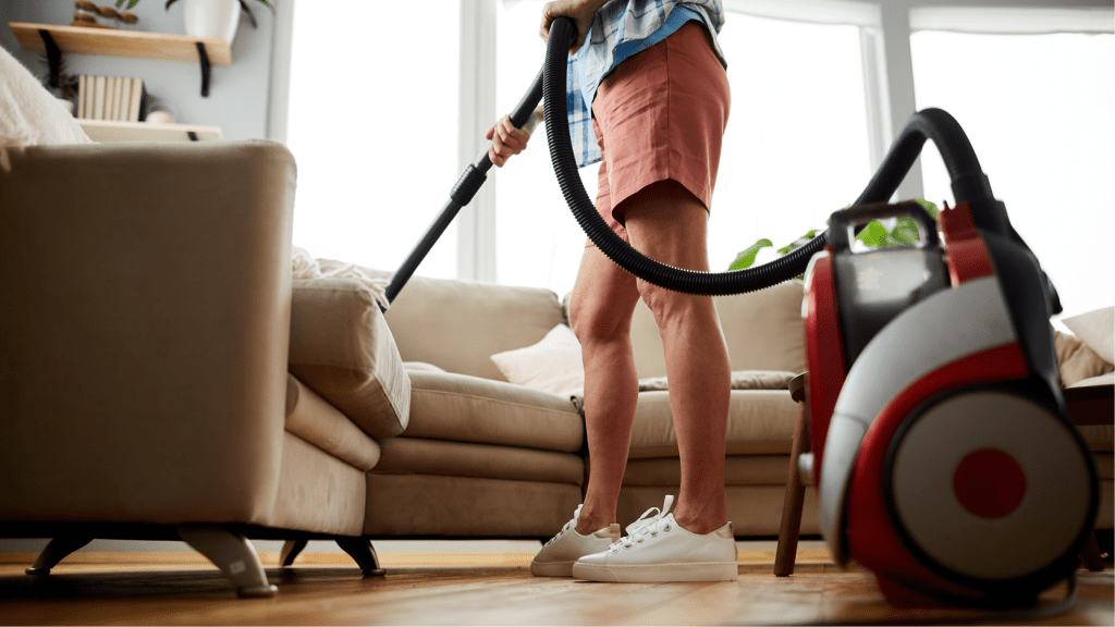 When cleaning the rest of the rooms in your home, take a top to tail approach. If possible remove the furniture or as much of it as possible and start by cleaning the walls, ceilings, fans, lights and windows. Then you should move onto the furniture and floors. Moving furniture out of the room means you won’t be enticed to simply mop or vacuum around the item, plus, they won’t get in your way when you’re cleaning the ceiling.
